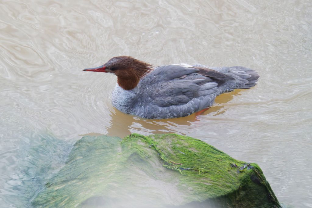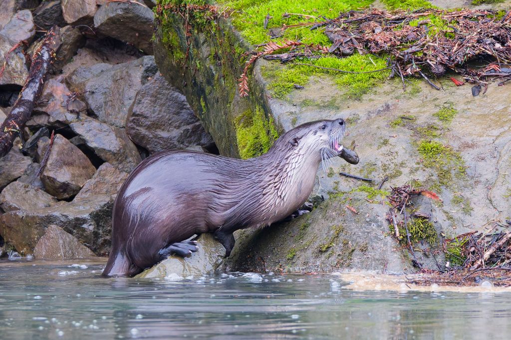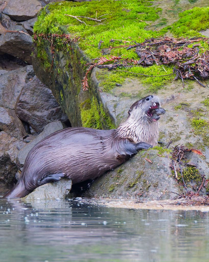 The birds didn’t exactly cooperate – we saw a few of the regulars ( in particular the common mergansers ) but the surprise for all was the Pacific River Otter. Again, my first time visiting Mill Bend earlier in the month I had seen a family of them – but this time we saw just a single otter. But she put on a show. She found a spot directly across from where we were standing and fished for probably 10-15 minutes. We watched her dive, come up, chow down on the (bullhead?), and then dive again and pull another fish. It was great. I helped identify a couple of the 29 species the group saw ( Allen Hummingbird and Belted Kingfisher). The group also called a Pacific Wren to come sit for us – the best, longest view of a Pacific Wren I’ve ever had.