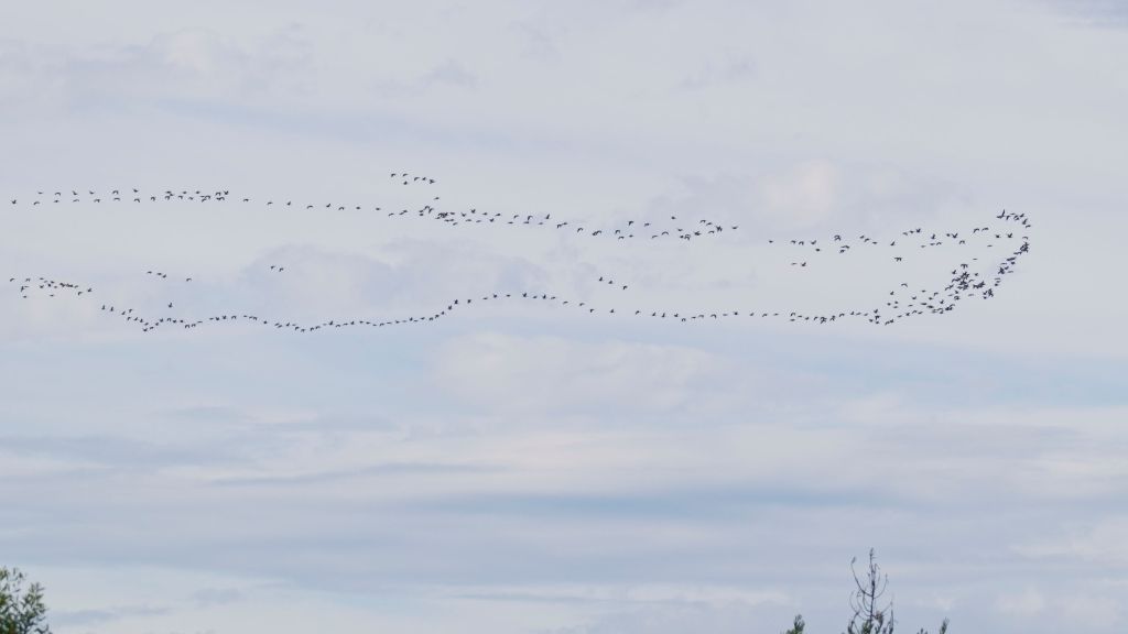 I managed to get back outside with camera in hand just as the flock was heading out of view – heading to Alaska or northern Canada to breed now.