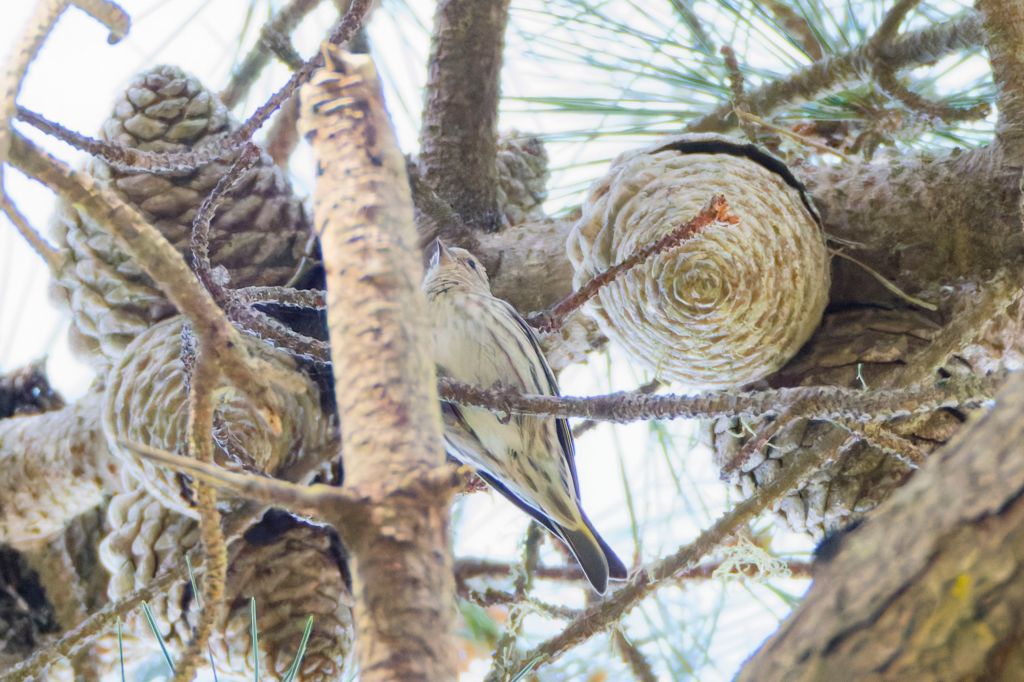 I got a terrible photo of the Pine Siskin, but I managed enough pixels to validate. Plus, Merlin was telling me all day yesterday and today they were above my head. 🙂