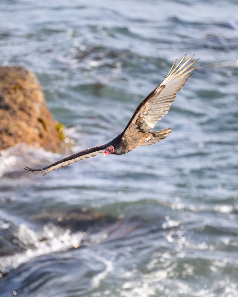 And sure enough, I found my first Osprey fishing. I say this like I’m some sort of authority on being able to suss out what an Osprey is doing, but in this case it seemed reasonable. He was fishing near a particular inlet in the ocean, continuously hovering over a couple of spots – looking intently down. Twice I saw his talons come out and he started a dive… and then aborted. Unfortunately, he moved back up the coast ( north !?! ) and I would never catch back up. But now I have at least a location where I’ve seen him fish. With any luck this year I’ll finally get a photo of an Osprey pulling a fish out of the ocean.